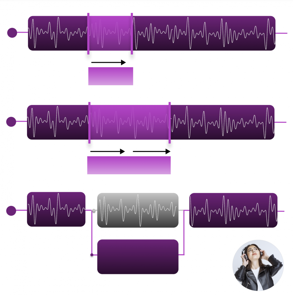 Alice wants to copy the content of the original branch into the new one. She drags and drop the selected part of the track to the new empty branch